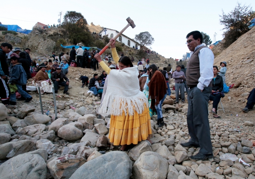 Every year, in the third week of August, Bolivian Catholics meet on the outskirts of La Paz, a cultural centre in the west of the country. There, they collect river rocks and try to break them.