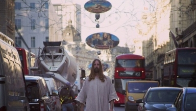 Normally found on Hollywood Boulevard, TMZ's 'Hollywood Jesus' has hopped over the pond and is now walking the streets of London.